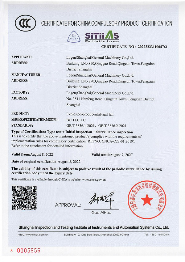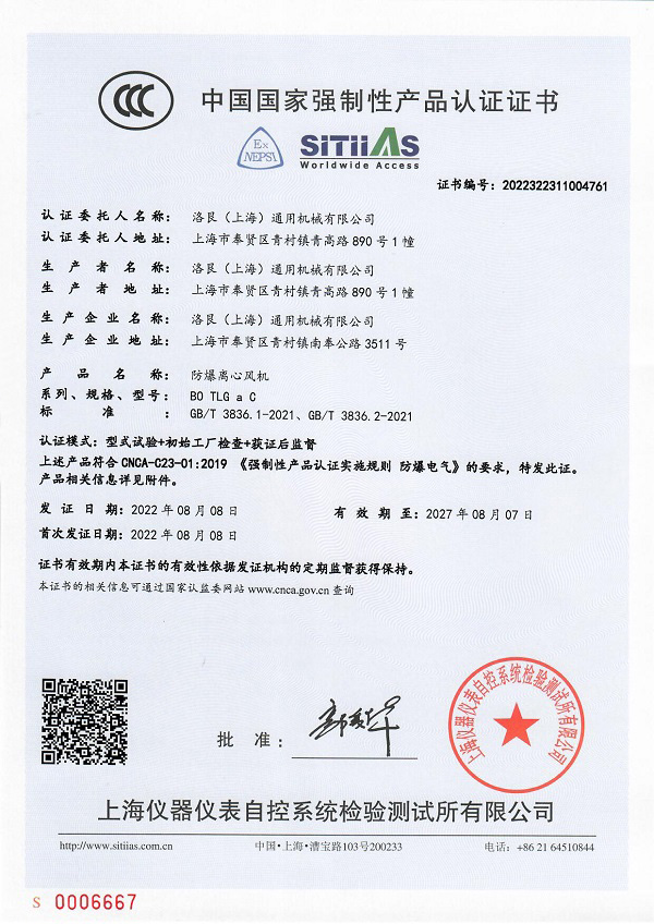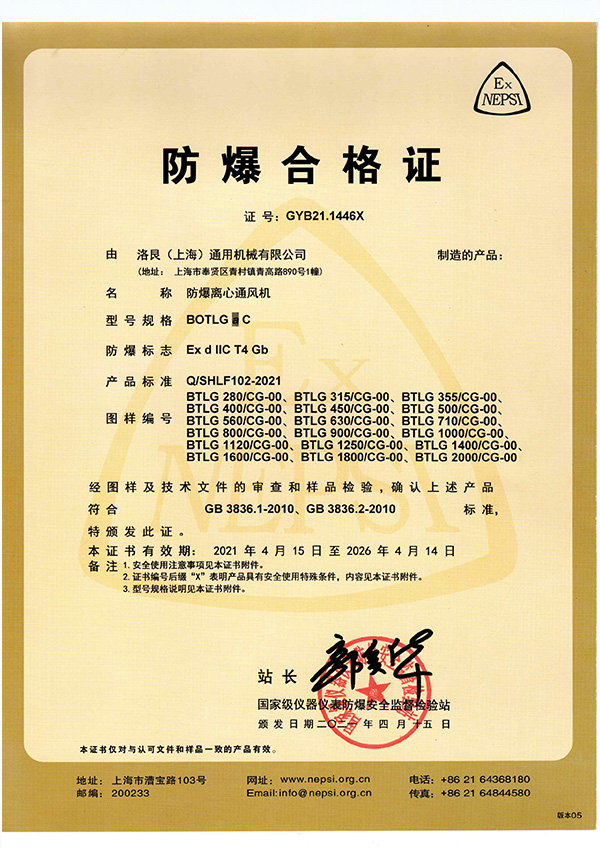 公司通过iOS9001及防爆风机等多个国家权威认定证书,并已通过欧盟CE认证积极开拓海外市场,把中国制造及中国品牌推向全世界。
